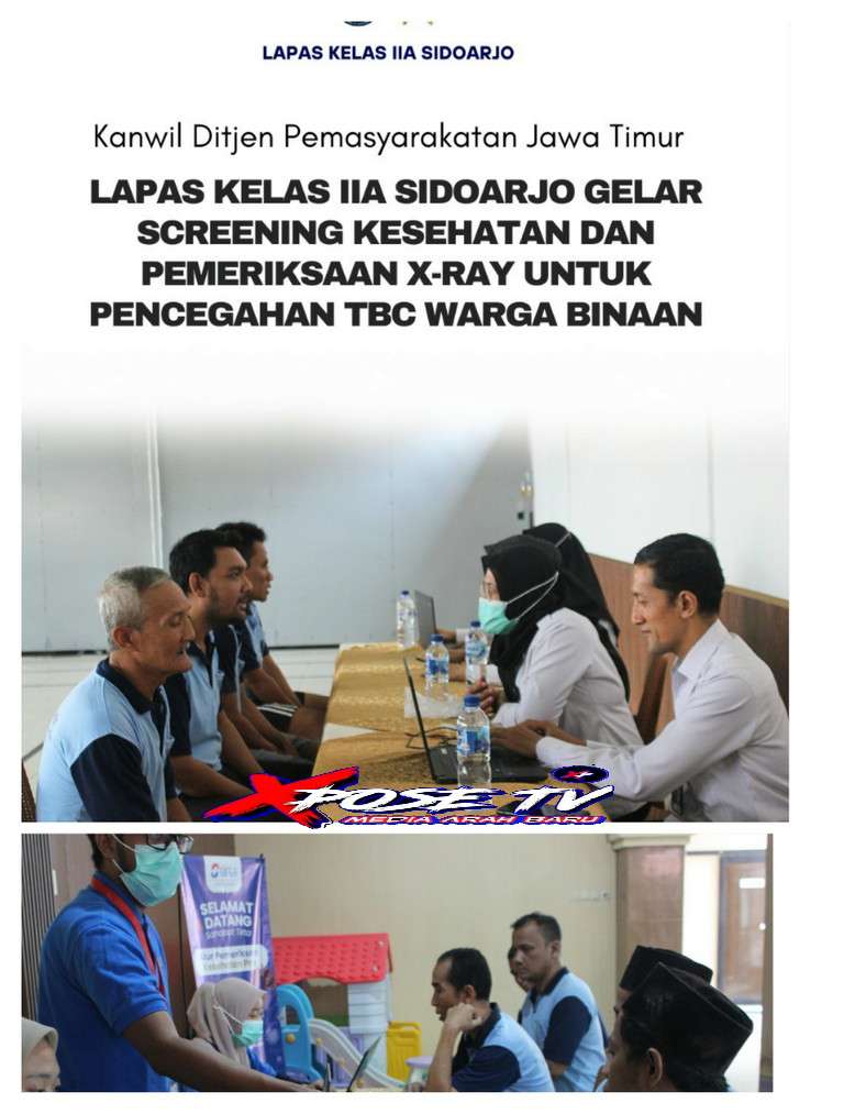 Xpose tv.Live, Sidoarjo – Lapas Kelas IIA Sidoarjo melaksanakan kegiatan screening kesehatan dan pemeriksaan X-Ray (Rontgen Dada) dalam rangka upaya pencegahan serta penemuan dini kasus Tuberkulosis (TBC) di lingkungan warga binaan. Selasa (24/9/25)