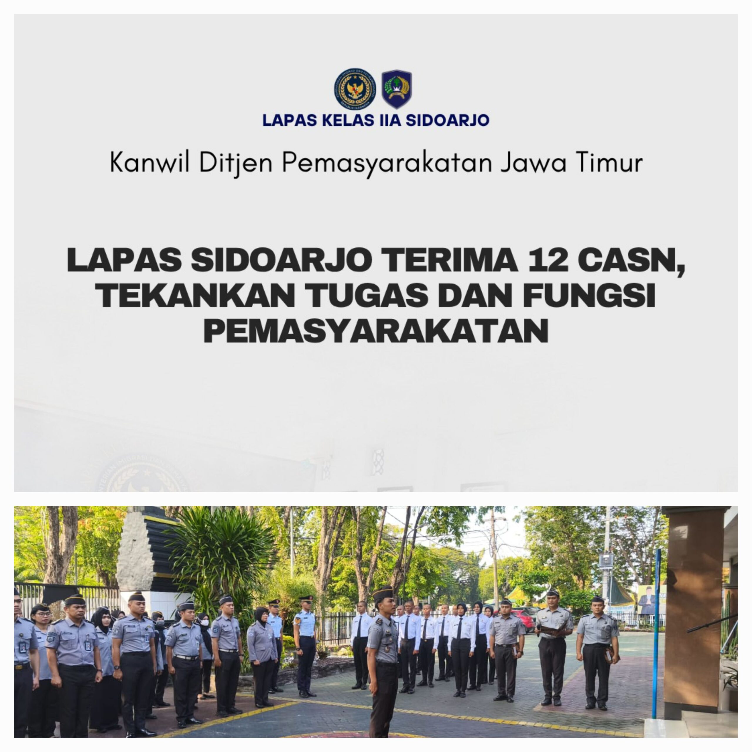 Xpose tv.Live, Sidoarjo – Lembaga Pemasyarakatan Kelas IIA Sidoarjo menyambut kedatangan Calon Aparatur Sipil Negara (CASN) formasi Tahun 2024 di melalui pelaksanaan apel pagi yang digelar di lapangan dalam lembaga. Senin (30/6/25)