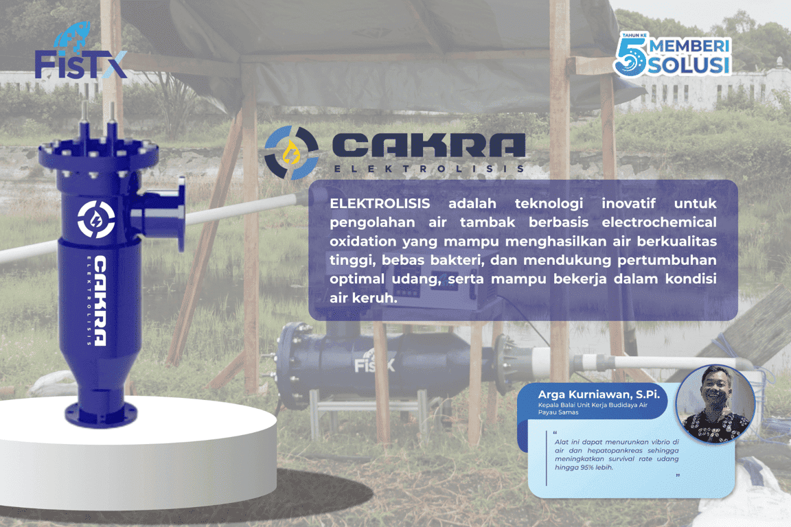 FisTx bersama BAP Samas Yogyakarta menguji teknologi Cakra Elektrolisis, alat sterilisasi air berbasis elektrokimia yang mampu menekan Vibrio hingga negatif dan meningkatkan survival rate udang menjadi 95%+. Uji satu siklus dilakukan di tambak BAP Samas sebagai respon tantangan penyakit dan fluktuasi pasar di tahun 2026 mendatang, hasilnya memantik harapan baru bagi budidaya udang Indonesia.