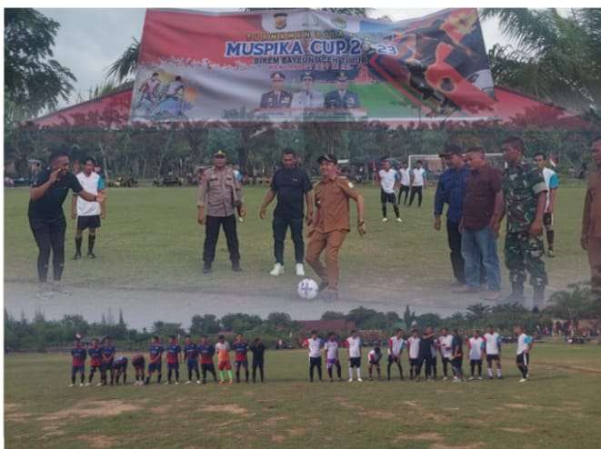 XPOSE TV Aceh Timur – Dalam rangka menyambut HUT RI ke-78, Muspika Birem Bayeun menyelenggarakan kegiatan tournament Muspika CUP Sepak bola se-Kecamatan Birem Bayeun, Kabupaten Aceh Timur. Muspika Birem Bayeun Menyelenggarakan Tournamen Sepak Bola Sekecamatan