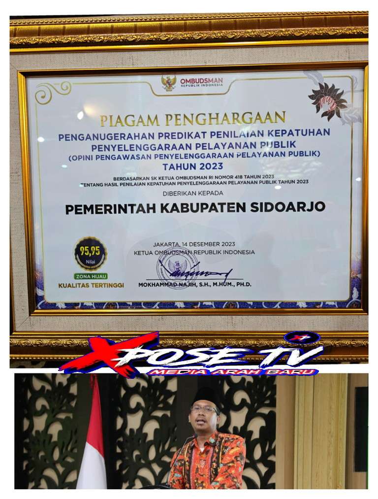Xpose tv. Live, Sidoarjo – Ombusman RI memberikan apresiasi kepatuhan penyelenggaraan pelayanan publik Pemerintah Kabupaten Sidoarjo. Lembaga pengawas pelayanan publik pemerintah itu menilai kepatuhan pelayanan publik yang dilakukan Pemerintah Kabupaten Sidoarjo sangat baik sehingga masuk dalam kategori kabupaten dengan pelayanan publik zona hijau dengan kualitas tertinggi. Kamis (25/1/24)