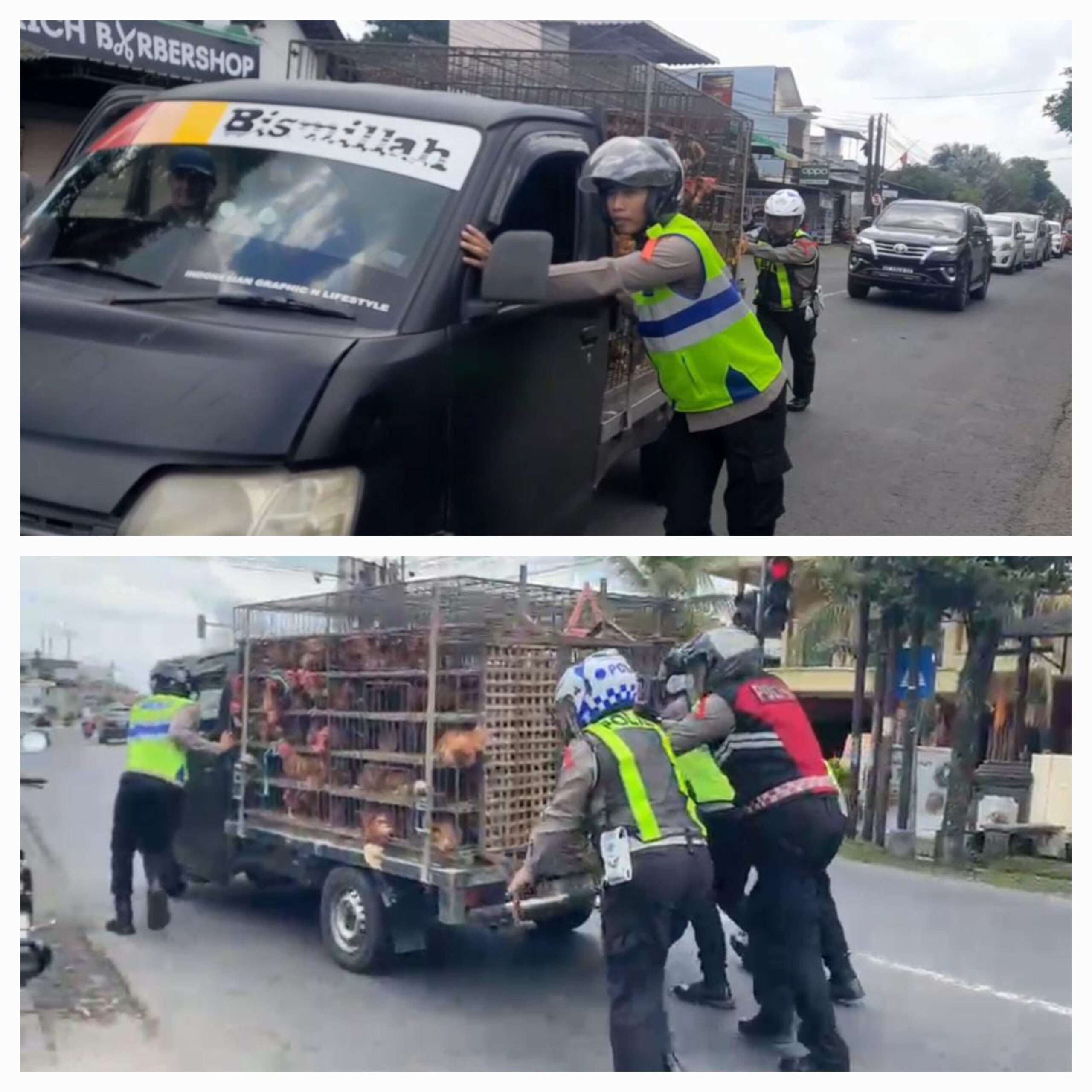 “Tadi kami menerima laporan ada kendaraan mogok di badan jalan, lalu kami bantu untuk penanganan agar tidak menimbulkan kemacetan,” ujar Iptu Putut usai bantu dorong mobil mogok.
