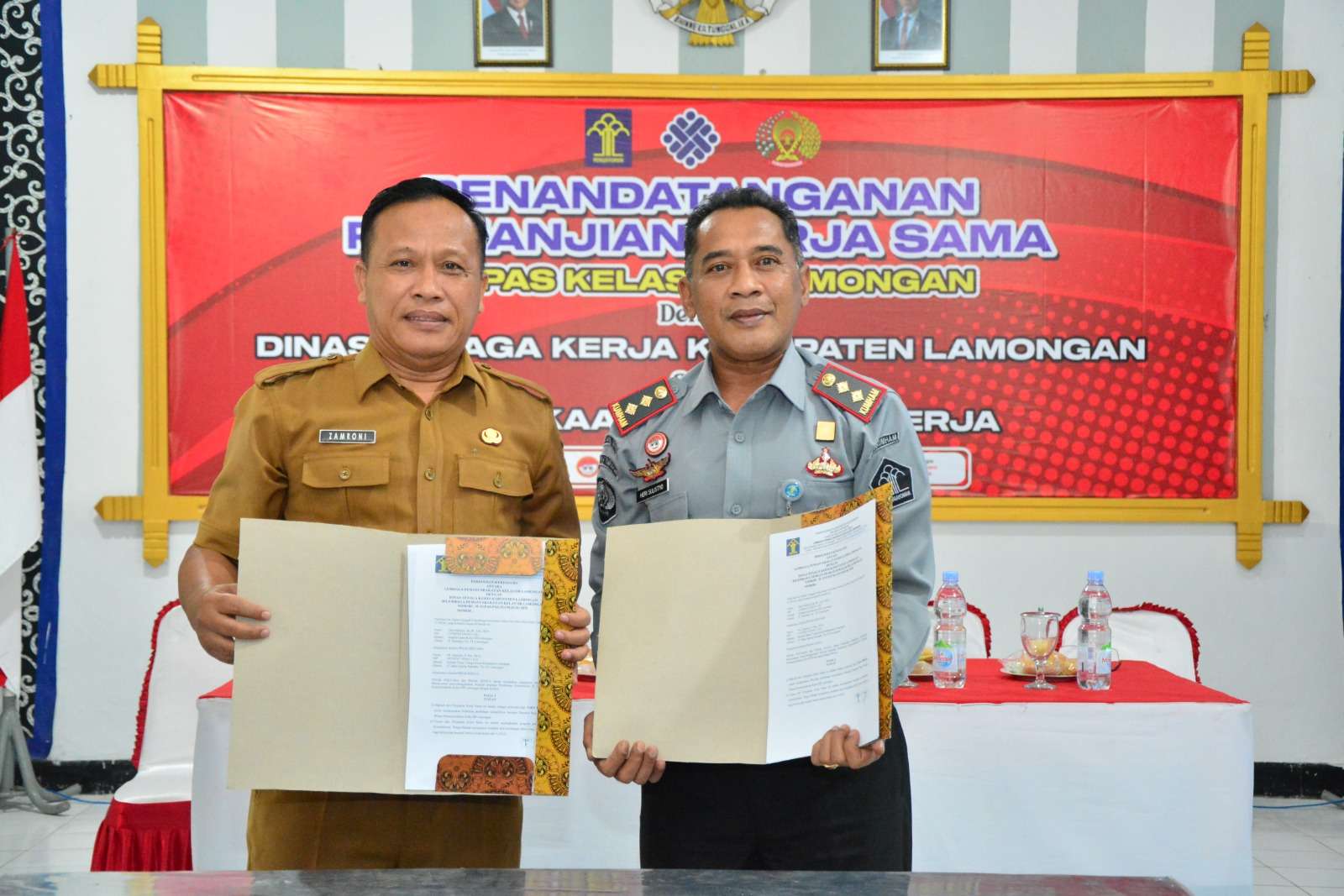 Penandatanganan Perjanjian Kerja Sama (PKS) serta Pembukaan Pelatihan Kerja tersebut dilaksanakan di Ruang Aula Lapas Lamongan serta dilakukan langsung oleh Kepala Lapas (Kalapas) Lamongan, Heri Sulistyo, bersama Kepala Dinas Tenaga Kerja Kabupaten Lamongan, Zamroni.