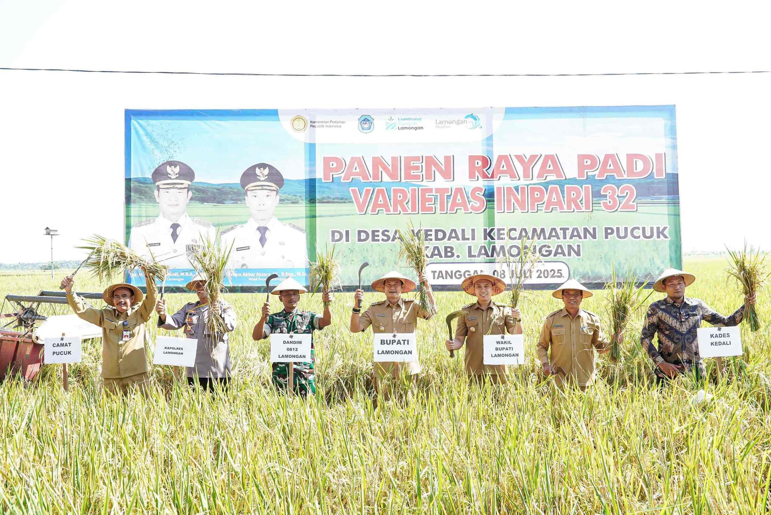 Sedangkan harga gabah kering di Lamongan berkisar di angka Rp. 7.000 per kg. Hal tersebut sebagaimana diungkapkan Bupati Lamongan Yuhronur Efendi saat panen raya padi, di Desa Kedali Kecamatan Pucuk, Selasa (8/7/2025).