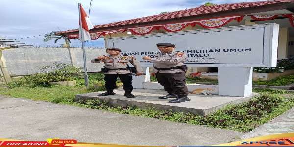 XposeTv//PolrestaGorontaloKota, untuk memastikan keamanan dan ketertiban tahapan pilkada 2024 yang sedang berlangsung, Polresta Gorontalo Kota menempatkan personelnya untuk mengamankan kantor Badan Pengawas pemilu ( BAWASLU )