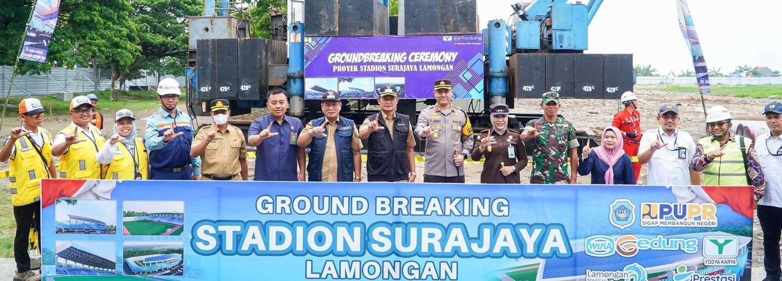 “Ground breaking ini menandai langkah awal pelaksanaan konstruksi pembangunan Stadion Surajaya Kabupaten Lamongan, yangmana ini nanti akan bisa dimanfaatkan oleh seluruh masyarakat Lamongan,” tutur Bupati yang akrab disapa Pak Yes.