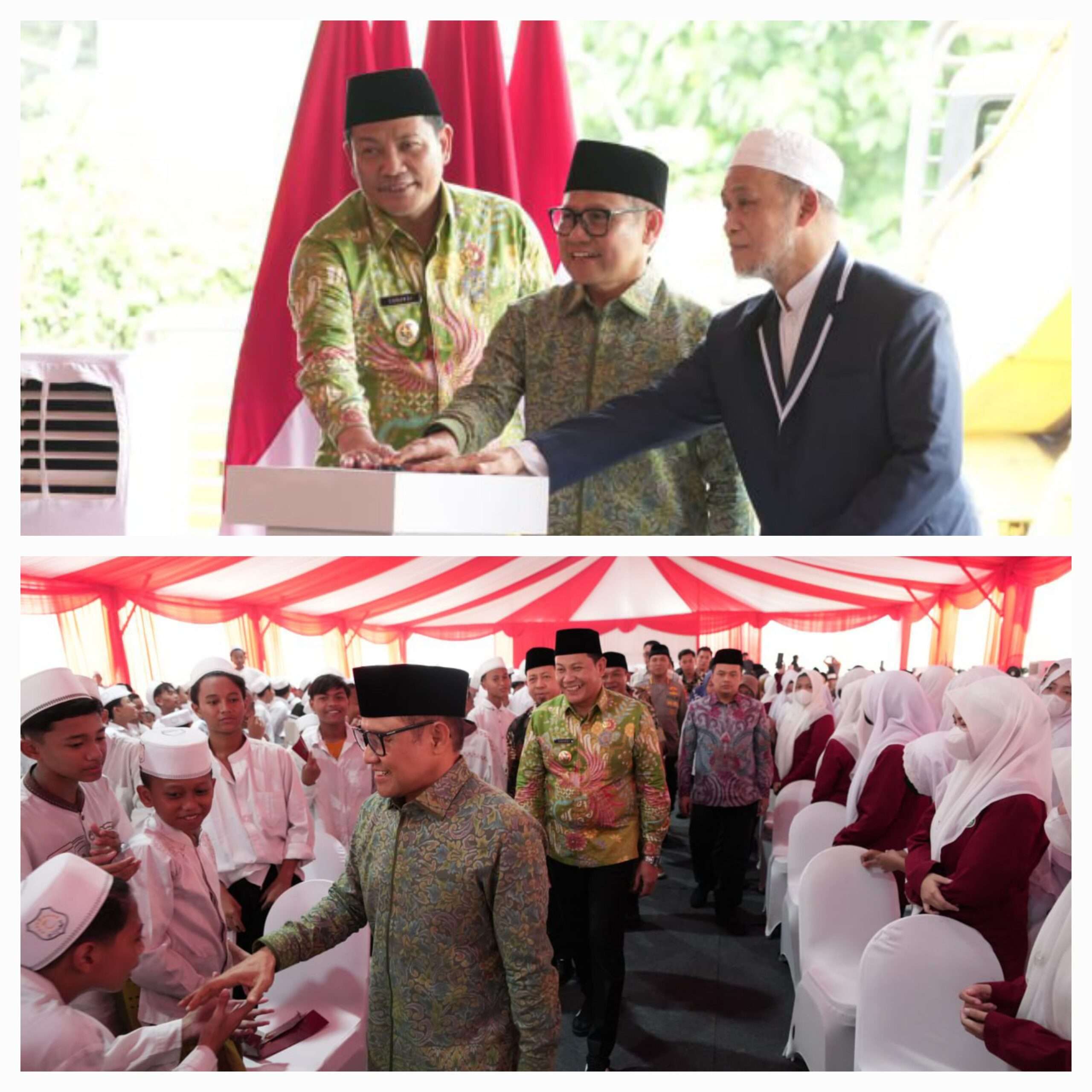 “Alhamdulillah hari ini saya dan seluruh lintas kementerian dalam satuan tugas rekonstruksi pesantren PU, Kementerian Agama, ATR/BPN, pemerintah daerah, termasuk Bupati memulai groundbreaking Pesantren Al-Khoziny,” ujar Muhaimin Iskandar dalam sambutannya.