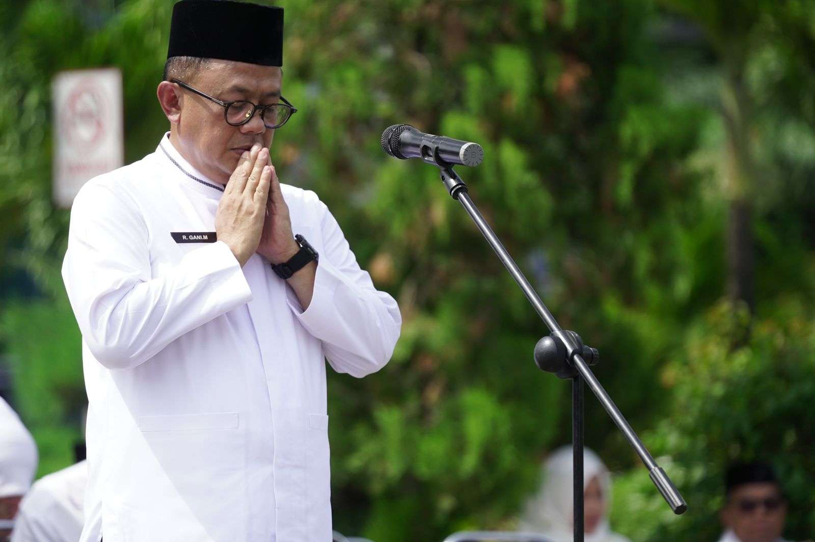 Penjabat (Pj) Wali Kota Bekasi R Gani Muhamad hadir menjadi pembina apel doa bersama didampingi Ketua KPU Kota Bekasi, Ketua Bawaslu Kota Bekasi dan Unsur Forum Komunikasi Pimpinan Daerah Kota Bekasi.