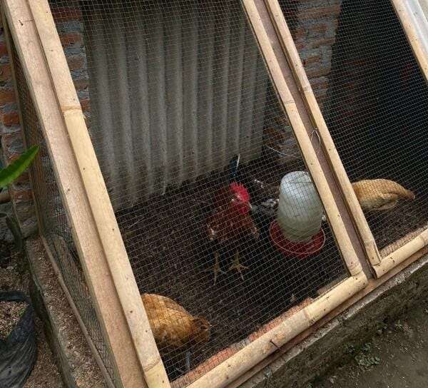 Kandang yang digunakan dalam program ini berukuran 3,5 m x 1 m x 1 m dan dirancang untuk menampung lima ekor ayam. Yakni terdiri dari empat betina dan satu jantan. Desain kandang ini memungkinkan sirkulasi udara yang baik serta memberikan ruang yang cukup bagi ayam untuk bergerak, sehingga dapat meningkatkan kesehatan dan produktivitasnya.