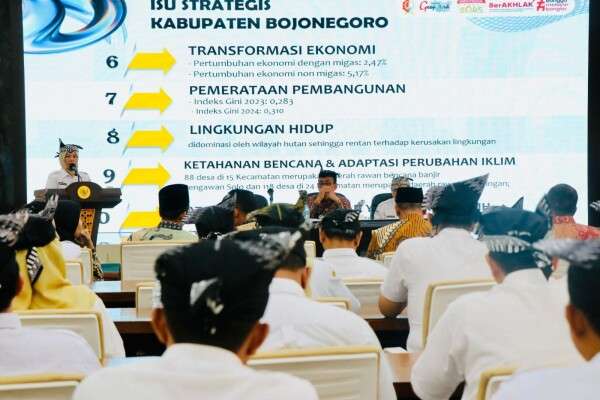 Kegiatan dihadiri Menteri Koordinator Bidang Pembangunan Manusia dan Kebudayaan Republik Indonesia Pratikno, dan Wakil Bupati Bojonegoro Nurul Azizah di ruang Angling Dharma, gedung Pemkab Bojonegoro.