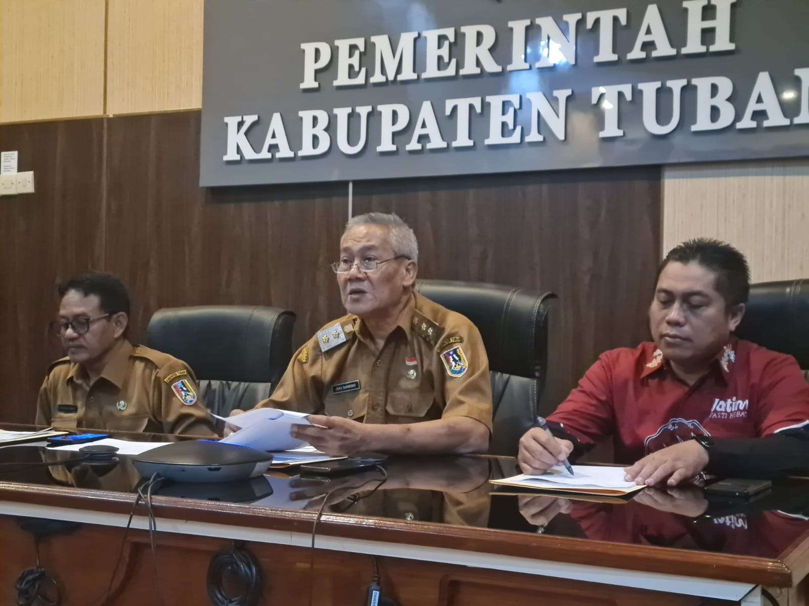 Hal itu disampaikan Wakil Bupati Tuban, Drs. Joko Sarwono saat menghadiri Penilaian Pemeriksaan Substantif Indikasi Geografis Batik Tulis Tenun Gedhog Tuban di ruang Aryo Tejo Setda Tuban, Selasa (12/08).