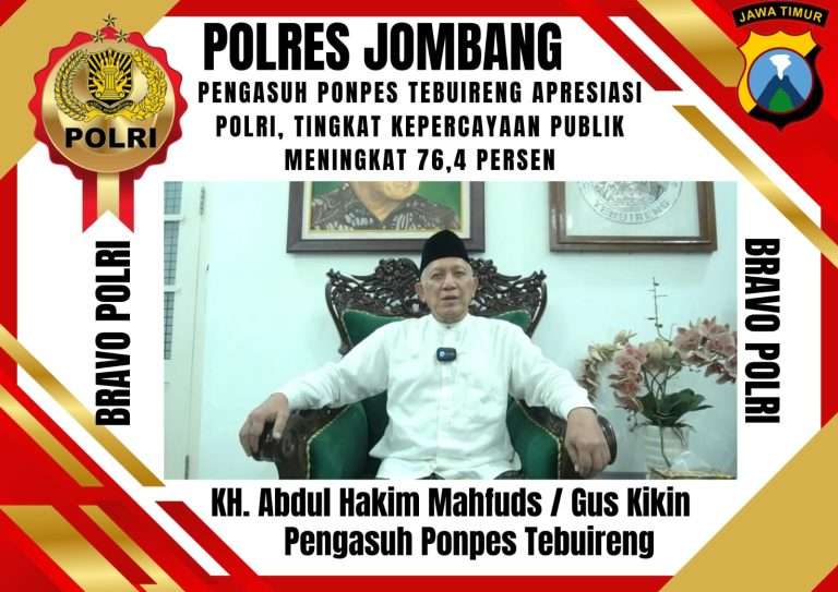 XPOSE TV JOMBANG – Pondok Pesantren Tebuireng Jombang memberikan apresiasi terhadap Polri setelah Lembaga Survei Indikator Politik Indonesia merilis hasil survei tingkat kepercayaan publik terhadap lembaga Polri cukup tinggi. Pengasuh Ponpes Tebuireng Apresiasi Polri, Tingkat Kepercayaan Publik Meningkat 76,4 Persen