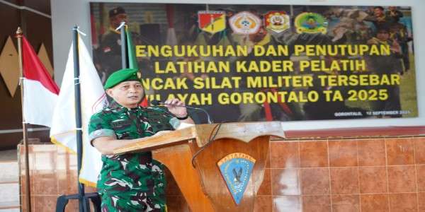 XposeTv//Gorontalo, 12 September 2025 – Kegiatan Pengukuhan Dan Penutupan Latihan Kader Pelatih Pencak Silat Militer Tersebar Wilayah Gorontalo Tahun 2025 telah dilaksanakan di Aula Mayonif 713/ST, Jalan Ahmad A Wahab, Desa Tinelo Kec. Telaga Biru, Kab. Gorontalo. Kegiatan ini dipimpin oleh Brigjen TNI Hardo Toga Parlindungan Sihotang (Danrem 133/NW) dan dihadiri oleh beberapa pejabat tinggi.
