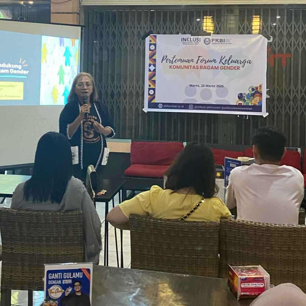 MAROS – Program INKLUSI PKBI Sulawesi Selatan menggelar Pertemuan Forum Keluarga Komunitas Ragam Gender di Café The Clove, Maros. Acara dihadiri oleh keluarga dari komunitas transpuan (Ragam gender) serta anggota komunitas itu sendiri, 25/03/2025.