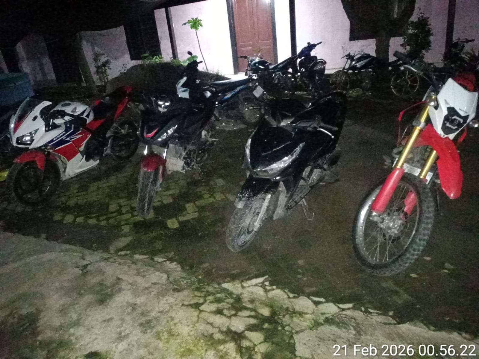 Petugas kemudian mengamankan Dua (2) buah sarung yang telah dimodifikasi dan berisikan batu, Empat (4) unit kendaraan roda dua, yaitu Honda CBR 150 No. Pol S 44XZ MN, Honda GTR 150 No. Pol S 41XX JDA, Honda Vario hitam tanpa nomor polisi