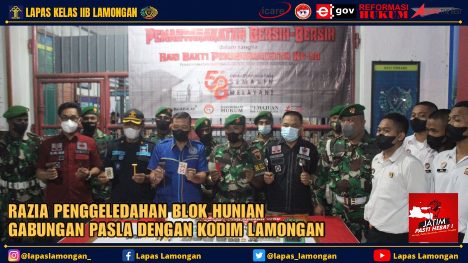 XPOSE TV Lamongan – Peringati Hari Bhakti Pemasyarakatan ke-58 Lapas Lamongan Gelar Razia “PEMASYARAKATAN BERSIH-BERSIH” Lapas Kelas IIB Lamongan Kanwil Kementerian Hukum dan Hak Asasi Manusia Jawa Timur gelar Razia dengan tajuk “Pemasyarakatan Bersih-Bersih” yang dilaksanakan Gabungan bersama Aparat Penegak Hukum terkait dengan sasaran kamar hunian Warga Binaan Pemasyarakatan (WBP).[23/04/2022].