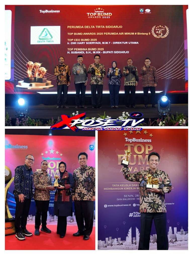 Xpose tv.Live, SIDOARJO – Perumda Delta Tirta Sidoarjo berhasil mencatatkan prestasi di kancah nasional dengan meraih penghargaan TOP BUMD Awards 2025. Penghargaan tersebut diserahkan di Hotel Raffles, Jakarta, Senin, 28 April 2025.