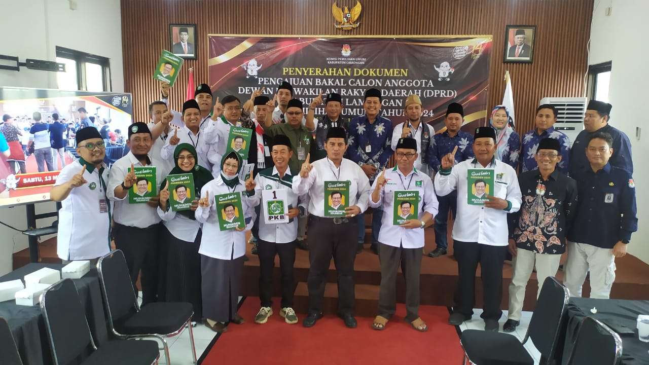 DPC PKB Lamongan mengawali perjalanannya dari rumah ketuanya (Abdul Ghofur) menuju ke Kantor KPU Lamongan untuk mendaftarkan 50 bakal calon legislatif (Bacaleg).