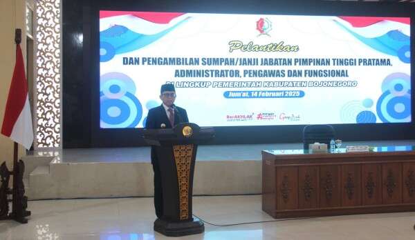 Bojonegorokab, XposeTv.live – Pj Bupati Bojonegoro Adriyanto melantik 123 pejabat, Jumat (14/2/2025) di ruang Angling Dharma gedung Pemkab. Pelantikan dan pengambilan sumpah/janji jabatan ini dilakukan bagi pimpinan tinggi pratama, administrator, pengawas dan fungsional di lingkup Pemerintah Kabupaten Bojonegoro.
