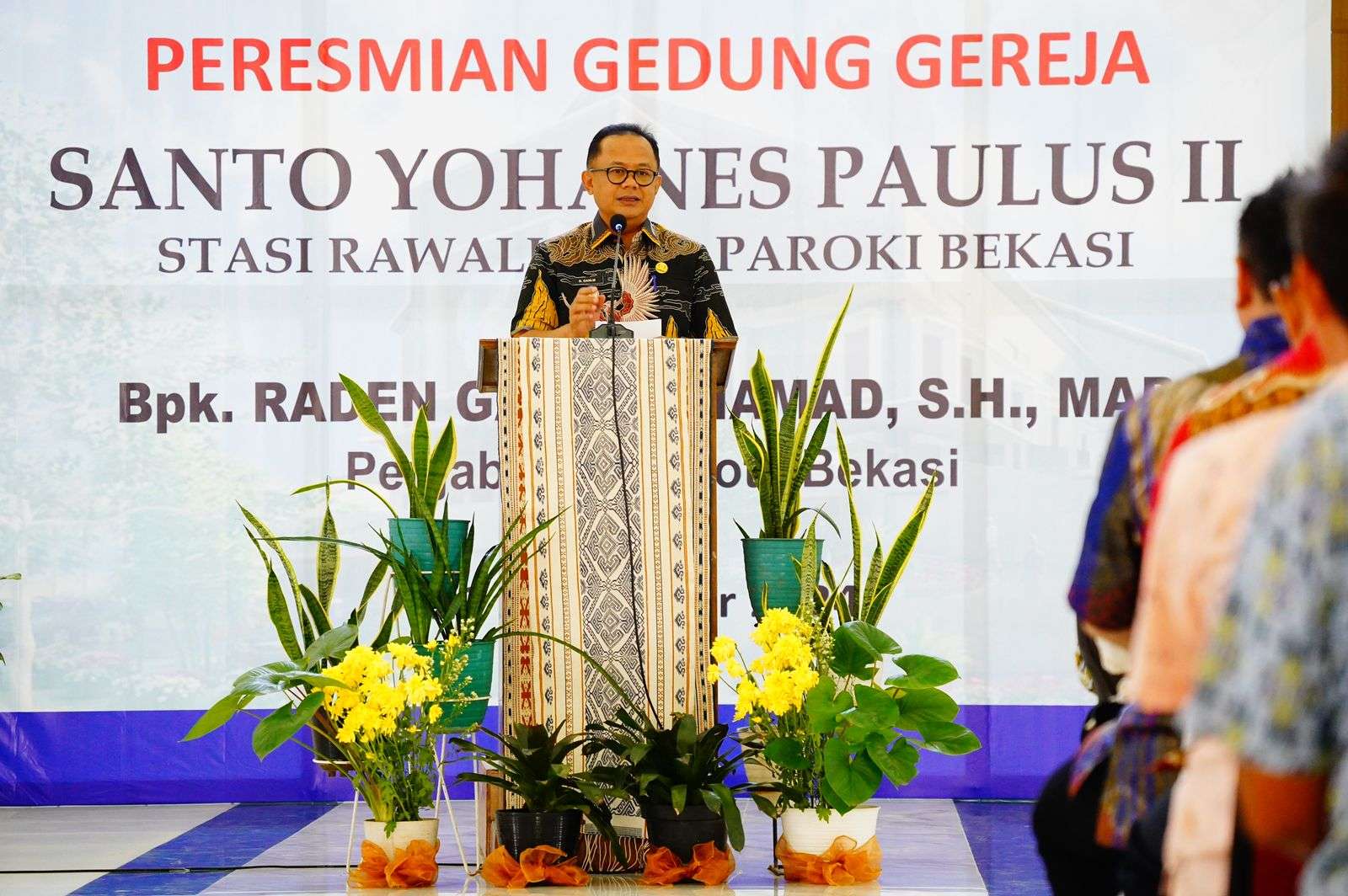 Menanggapi hal tersebut, dalam sambutannya, Pj. Wali Kota Bekasi, Gani Muhamad mengatakan dirinya merasa senang dan bangga dapat meresmikan Gereja Santo Yohanes Paulus II.