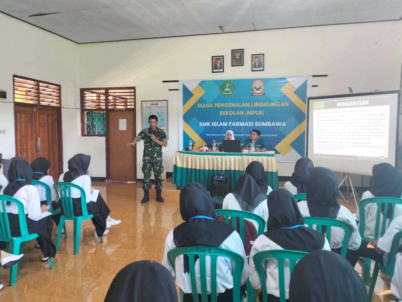XposeTV NTB – Sumbawa Besar, Pada hari Selasa, 16 Juli 2024 , bertempat di SMK Islam Farmasi Sumbawa, Kelurahan Uma Sima, Danramil 1607-01/Sumbawa, Lettu Arm Iwan Arsyadiharjo, melaksanakan kegiatan pemberian materi Wawasan Kebangsaan kepada siswa-siswi baru dalam rangka masa pengenalan lingkungan sekolah (MPLS) SMK Islam Farmasi Sumbawa.