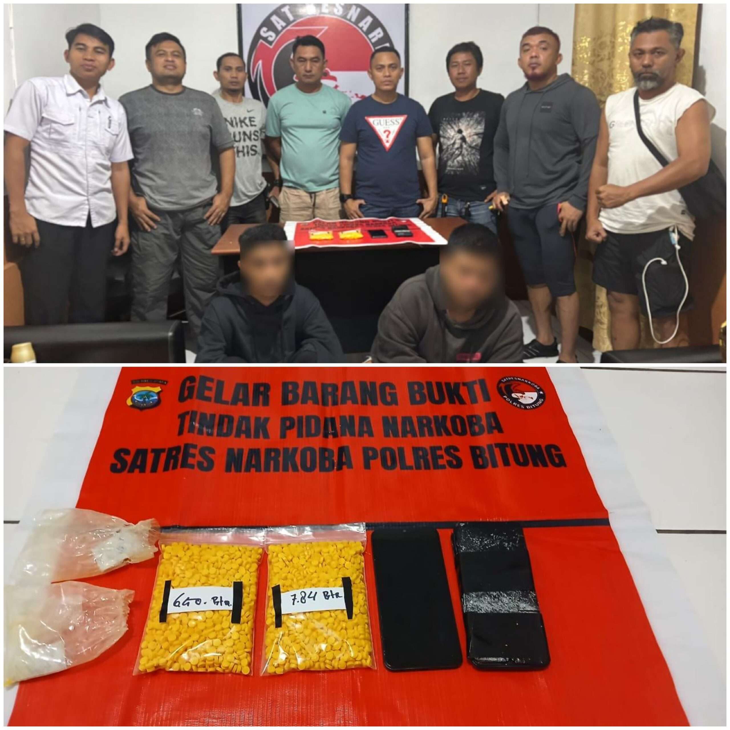 Polisi menyita barang bukti berupa 1.443 butir Trihexypenidyl serta dua unit handphone. Menurut keterangan Kasat Narkoba, RH memesan obat tersebut melalui WhatsApp dari orang tidak dikenal dan melakukan pembayaran via aplikasi DANA sebesar Rp1.000.000. Kedua tersangka kini ditahan di Mapolres Bitung untuk proses hukum lebih lanjut.