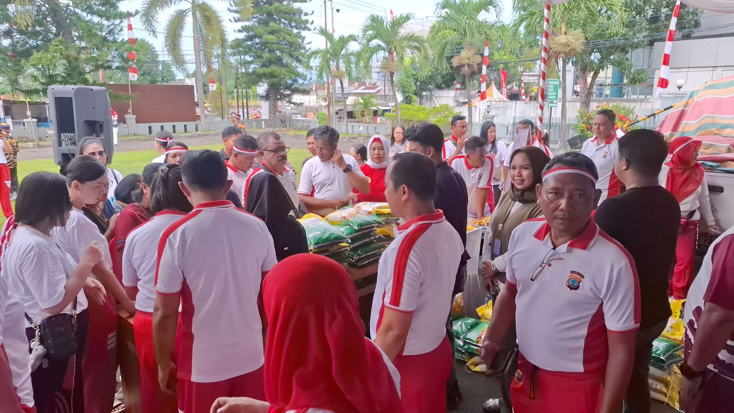 Kegiatan Gerakan pangan murah Polri Polres Bitung bekerjasama dengan Perum Bulog SulutGo dan Perumda Pasar dalam rangka menyambut HUT Kemerdekaan RI ke-80 tahun berakhir pada Pukul 12.00 Wita berjalan dengan baik dan lancar. (Onal)
