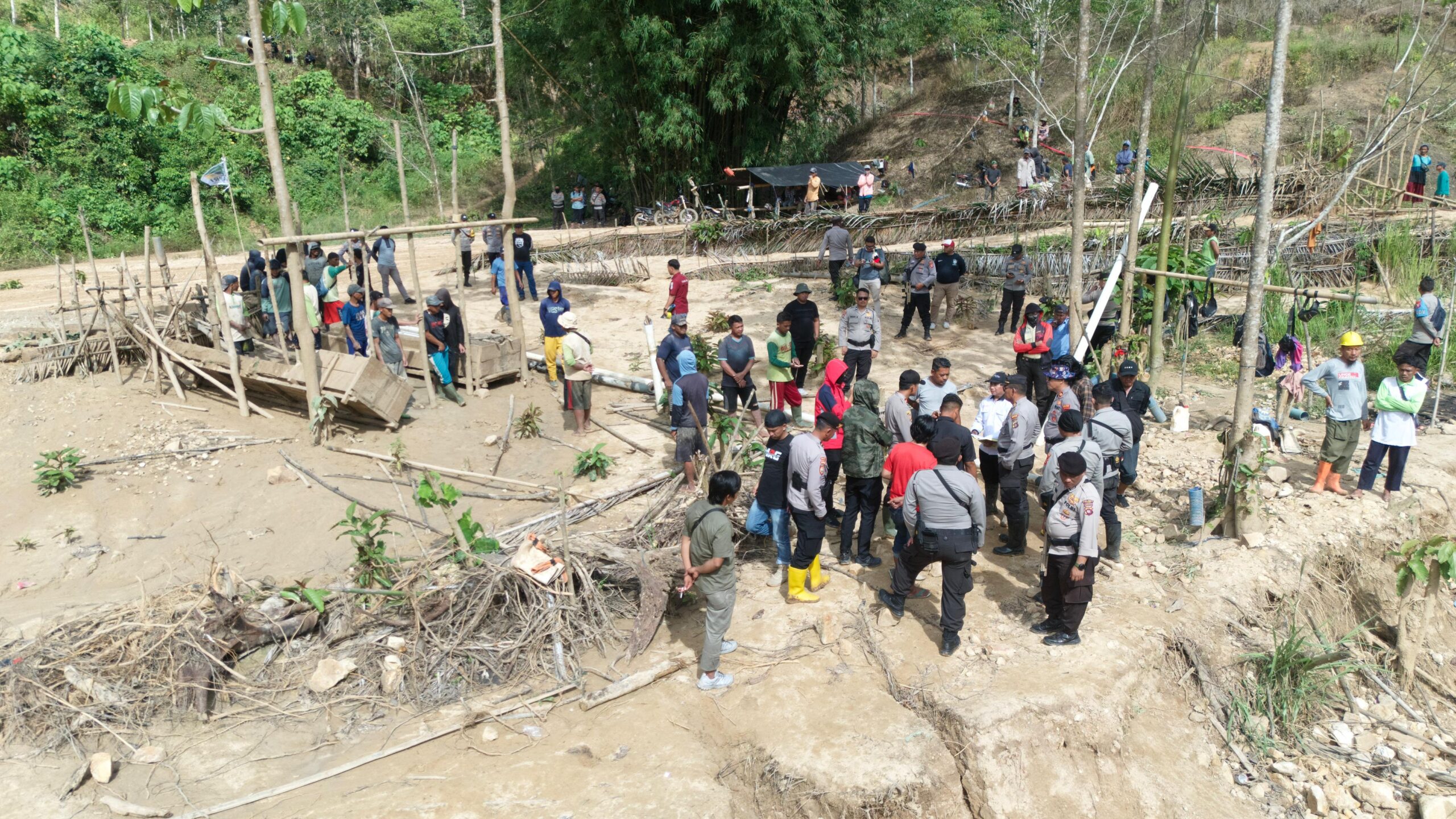 “Kami sudah berulang kali memberikan himbauan kepada para pekerja PETI, namun tidak diindahkan. Untuk itu, hari ini kami mengambil tindakan tegas berupa penyitaan mesin dompeng dan pembongkaran camp beserta alat yang digunakan untuk menambang,” tegas AKP Ondang A. Zakaria.