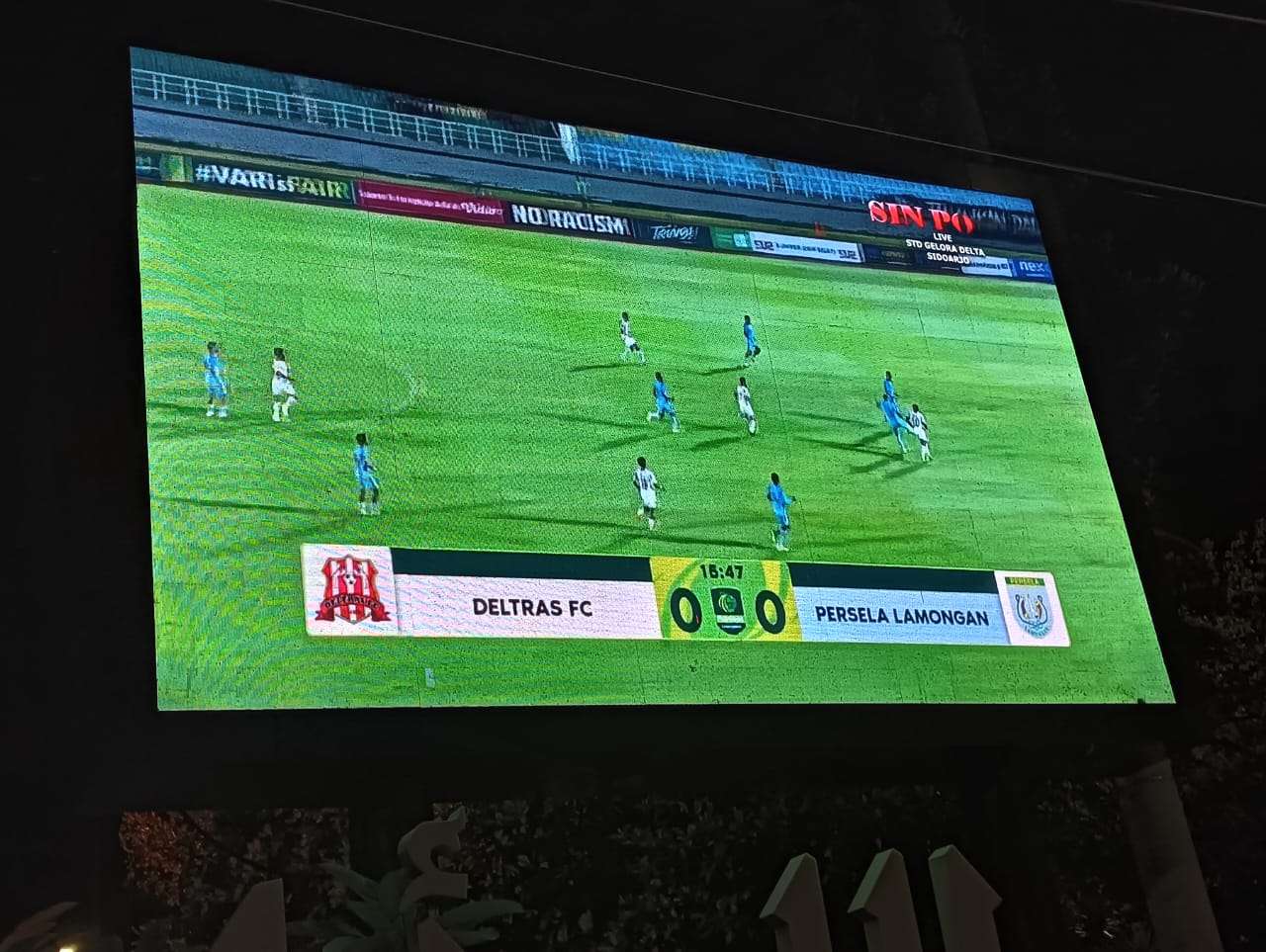 Pertandingan berlangsung sengit. Babak pertama dimulai pukul 19.00 hingga 19.45 WIB dengan skor sementara 1-1.