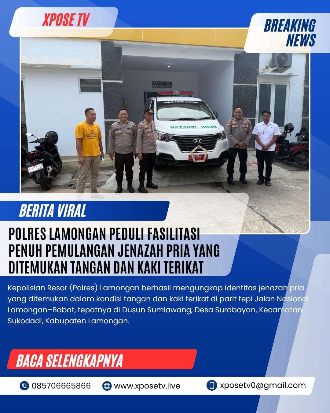 Xposetv.live Lamongan, 22/10/2025 – Kepolisian Resor (Polres) Lamongan berhasil mengungkap identitas jenazah pria yang ditemukan dalam kondisi tangan dan kaki terikat di parit tepi Jalan Nasional Lamongan–Babat, tepatnya di Dusun Sumlawang, Desa Surabayan, Kecamatan Sukodadi, Kabupaten Lamongan.