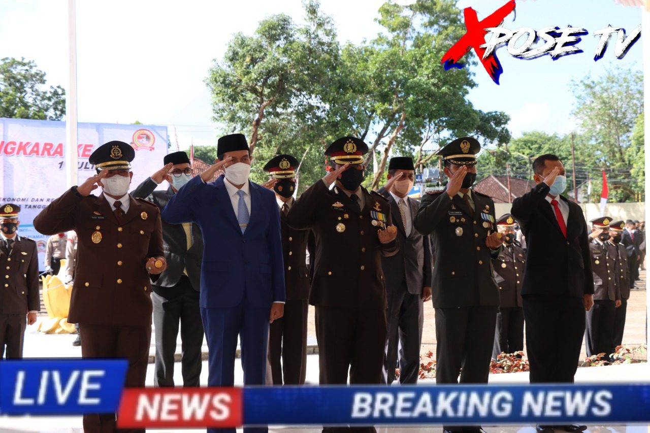 “Walaupun dilaksanakan diluar ruangan dengan sederhana, namun upacara tetap mengikuti protokol kesehatan,” ujar Kapolres.