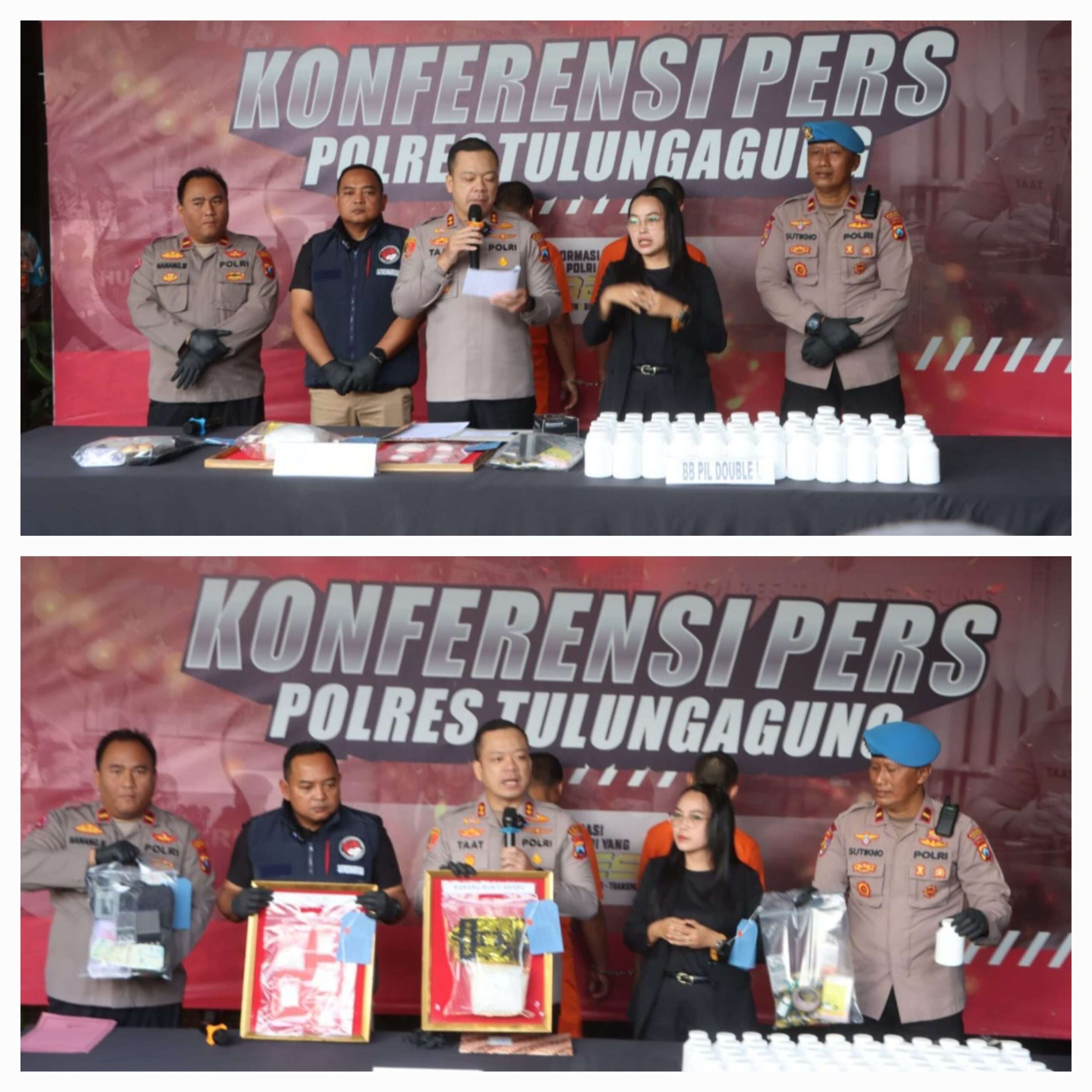 Kali ini, Satresnarkoba Polres Tulungagung jajaran Polda Jatim itu mengungkap Dua kasus dengan barang bukti terbesar pada tahun ini, yakni 1,2 kilogram sabu dan 60.163 butir pil Double L.