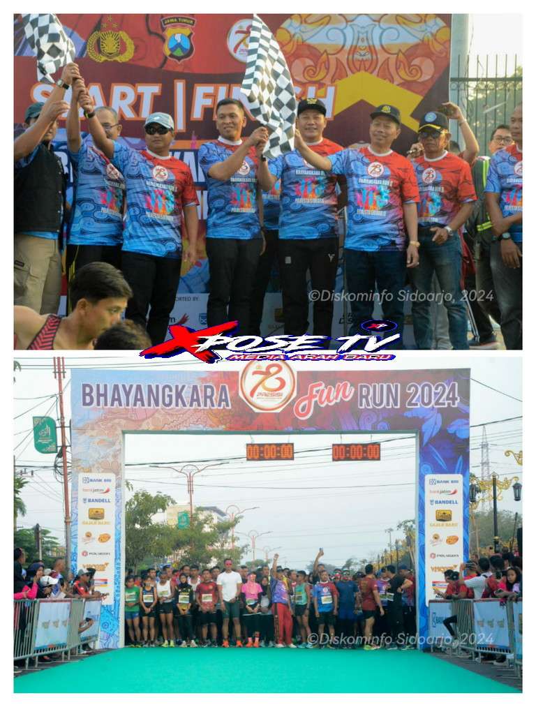 Xpose tv. Live, Sidoarjo – Polresta Sidoarjo menyelenggarakan Bhayangkara Fun Run 2024 di GOR Sidoarjo. Acara ini diikuti oleh ribuan peserta dari berbagai kalangan masyarakat dalam rangka memeriahkan HUT Bhayangkara ke-78. Turut hadir Plt Bupati Sidoarjo Subandi. Minggu (28/7/24)
