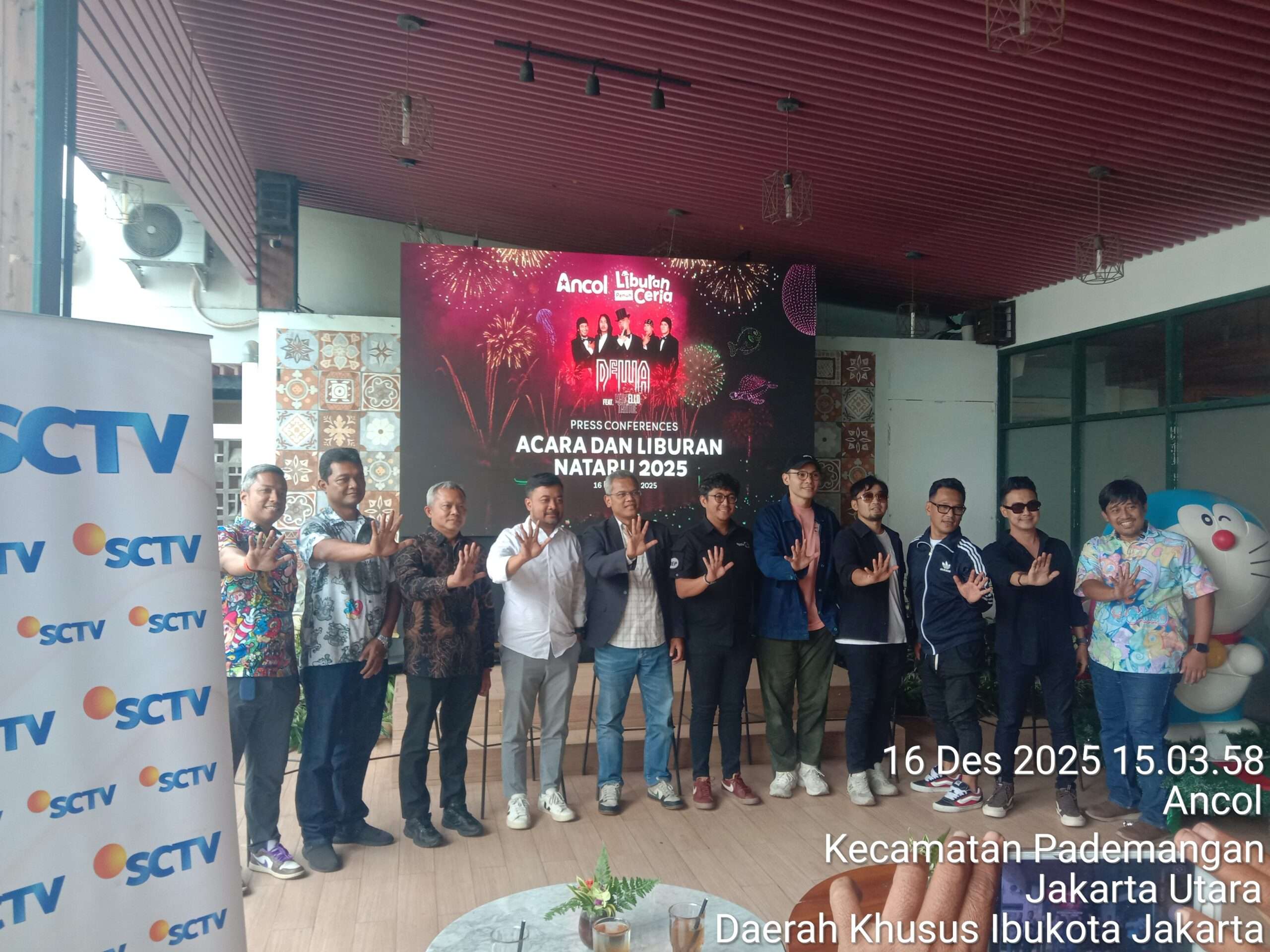 XposeTV, Jakarta – PT Pembangunan Jaya Ancol menggelar konferensi pers terkait liburan akhir tahun 2025 dan malam pergantian tahun 2026 yang berkolaborasi dengan stasiun televisi swasta terkenal SCTV untuk kesekian kalinya seperti tahun-tahun sebelumnya akan menggelar Kembang Api terbesar di Indonesia kemudian ada konser Akbar dari grup band papan atas seperti: Dewa 19, Five minute, Hello dan di semarakkan artis ibukota yaitu Ello . Tidak ketinggalan pula artis-artis dangdut ibukota. Konferensi pers ini di gelar di restoran Ombak Laut yang berlokasi di dalam area wisata Ancol, Kecamatan Pademangan, Jakarta Utara, Selasa (16/12/2025).