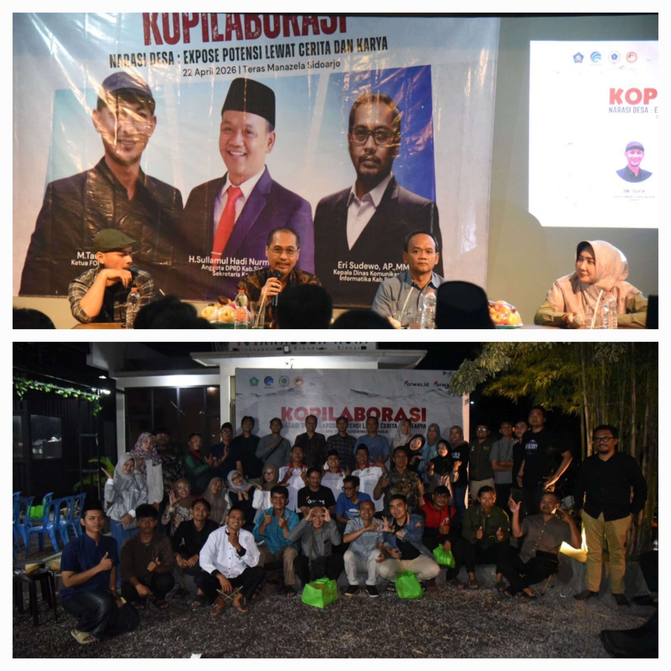 Acara bertajuk Kopilaborasi Narasi Desa: Expose Potensi Lewat Cerita dan Karya itu juga dihadiri oleh Kepala Dinas Kominfo Sidoarjo Eri Sudewo, Anggota DPRD Sidoarjo H Sullamul Hadi Nurmawan, dan sejumlah wartawan yang tergabung dalam Forum Wartawan Sidoarjo (Forwas).