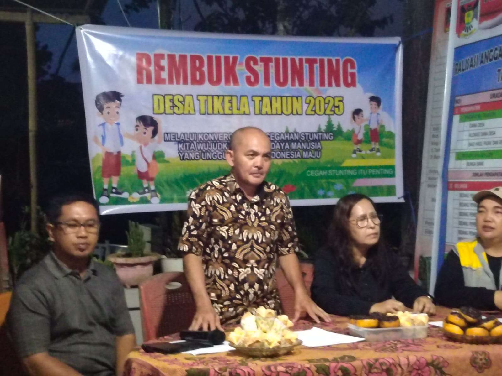 Pendamping desa juga memaparkan data dan strategi konvergensi yang akan diterapkan di Desa Tikela untuk menekan angka stunting, termasuk pemantauan tumbuh kembang anak, peningkatan peran kader posyandu, serta edukasi kepada keluarga.