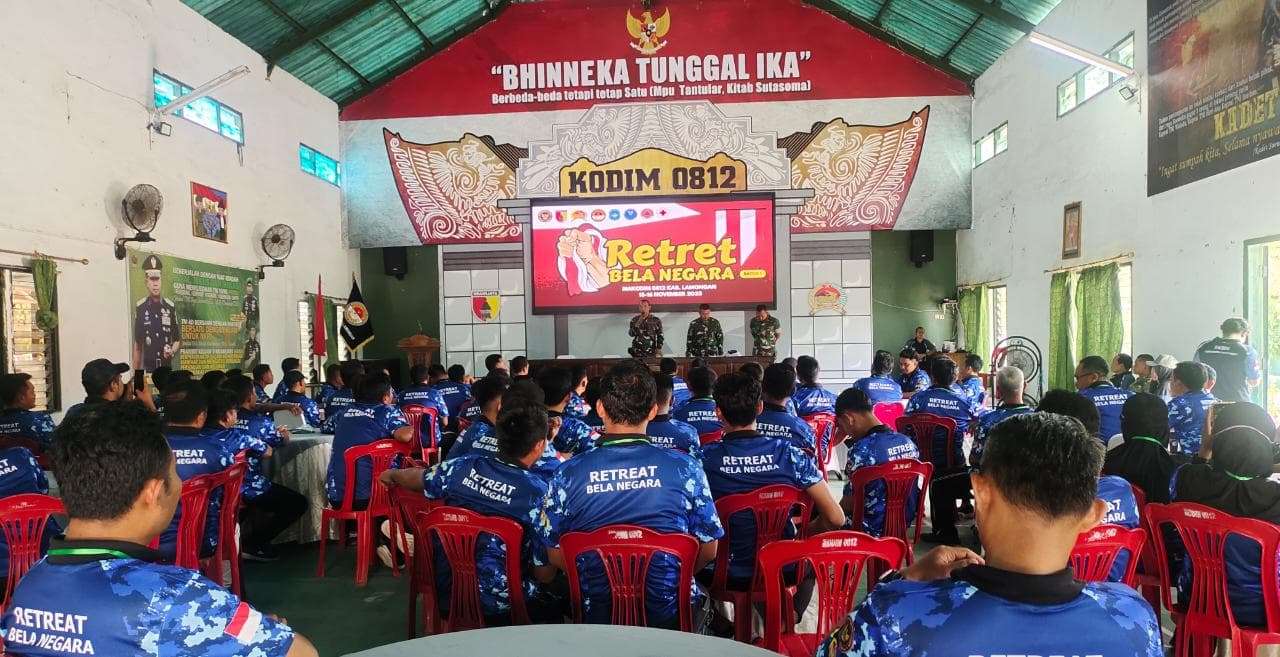 Lamongan – Sebanyak 84 Guru Aparatur Sipil Negara (ASN) dari berbagai sekolah dasar dan menengah pertama di Kabupaten Lamongan mengikuti Retret Bela Negara dengan tema “Membangun Peran dan Kesadaran Bela Negara Untuk Indonesia Emas”. Kegiatan intensif yang berlangsung selama dua hari, Sabtu hingga Minggu (15-16 November 2025) ini, digelar atas kerjasama Komando Distrik Militer (Kodim) 0812 Lamongan dengan Forum Kader Bela Negara (FKBN), menandai komitmen serius dalam membangun fondasi karakter bangsa sejak dari lingkungan pendidikan.