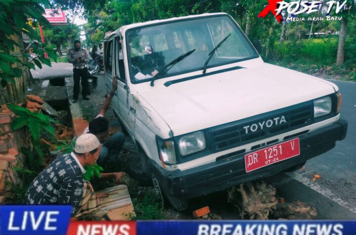 Sat Lantas Bantu Evakuasi Mobil Dinas Loteng Yang Alami Laka Lantas Tunggal