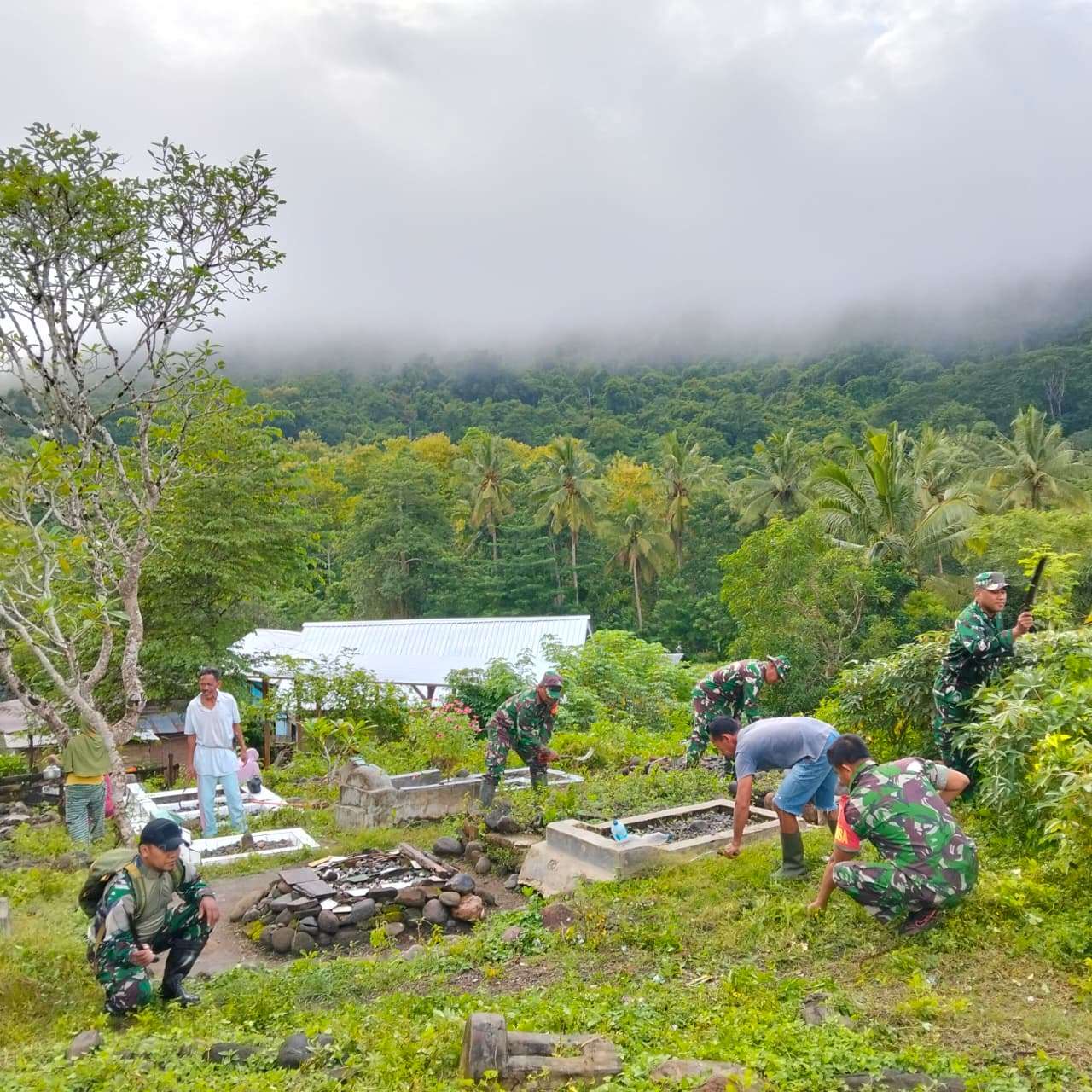 Lenangguar, Sumbawa – Komitmen membangun kemanunggalan TNI dengan rakyat kembali ditunjukkan oleh Koramil 1607-03/Ropang melalui kegiatan gotong royong Jum’at Bersih di Tempat Pemakaman Umum (TPU) Desa Lenangguar, Kecamatan Lenangguar, Jumat (27/02/2026).