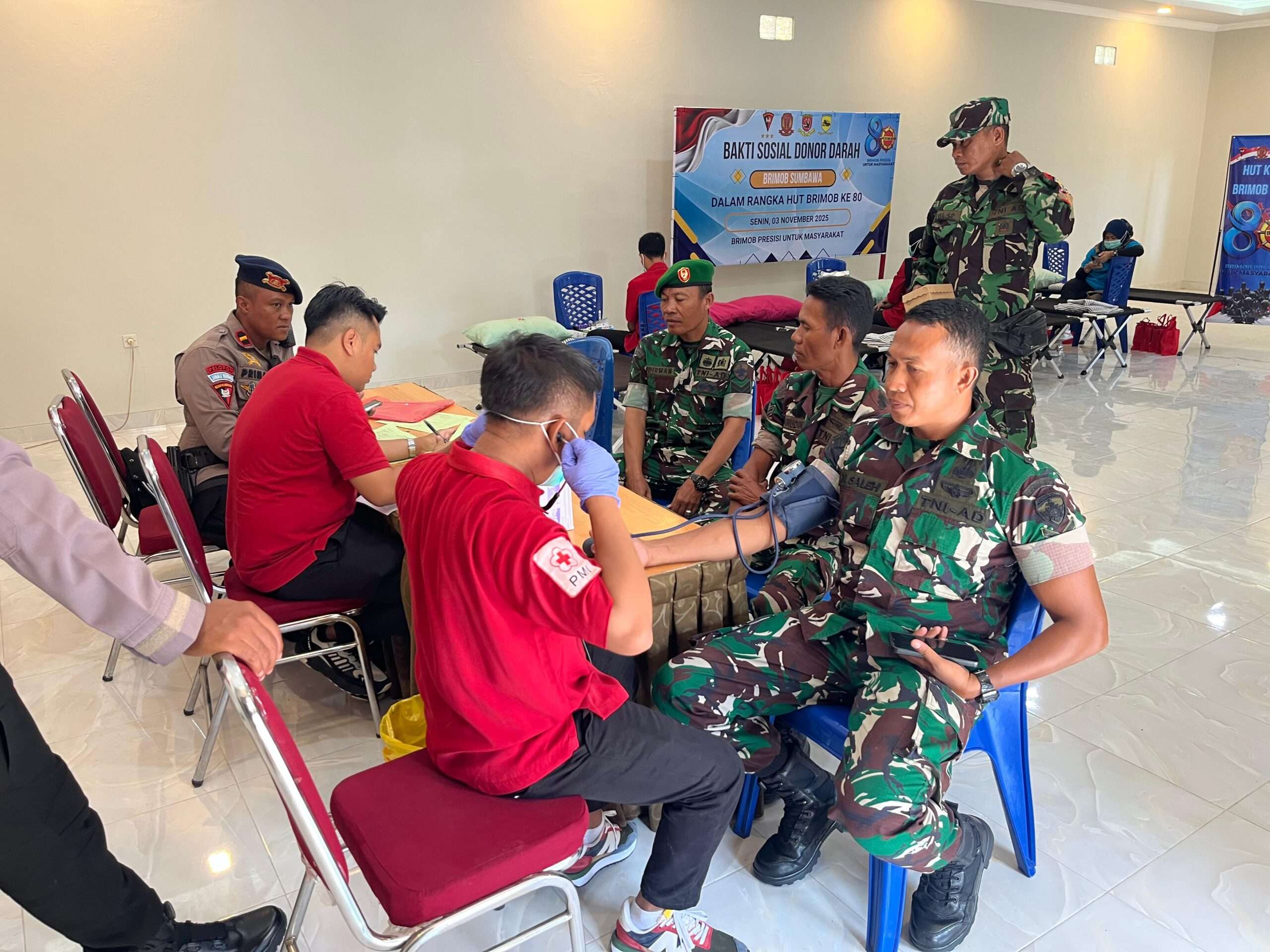 NTB, Sumbawa Besar — Dalam rangka memperingati Hari Ulang Tahun (HUT) Korps Brimob Polri ke-80, personel Kodim 1607/Sumbawa turut berpartisipasi dalam kegiatan bakti sosial donor darah yang diselenggarakan oleh Kompi 1 Batalyon B Pelopor Brimob Sumbawa, bertempat di Mako Brimob Sumbawa. Senin (03/11/2025).