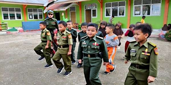 Semarak Kemerdekaan: Anak-anak SDN 1 Boliyohuto Berlatih Gerak Jalan dengan Seragam TNI untuk Sambut HUT RI ke-80.
