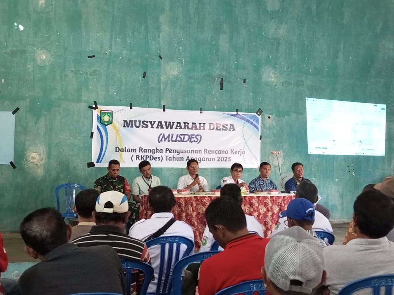 Babinsa Desa Teluk Santong, Serda Kusnaidin, berperan aktif dalam mendukung program-program desa, termasuk dalam musyawarah yang membahas rencana kerja pemerintah desa.