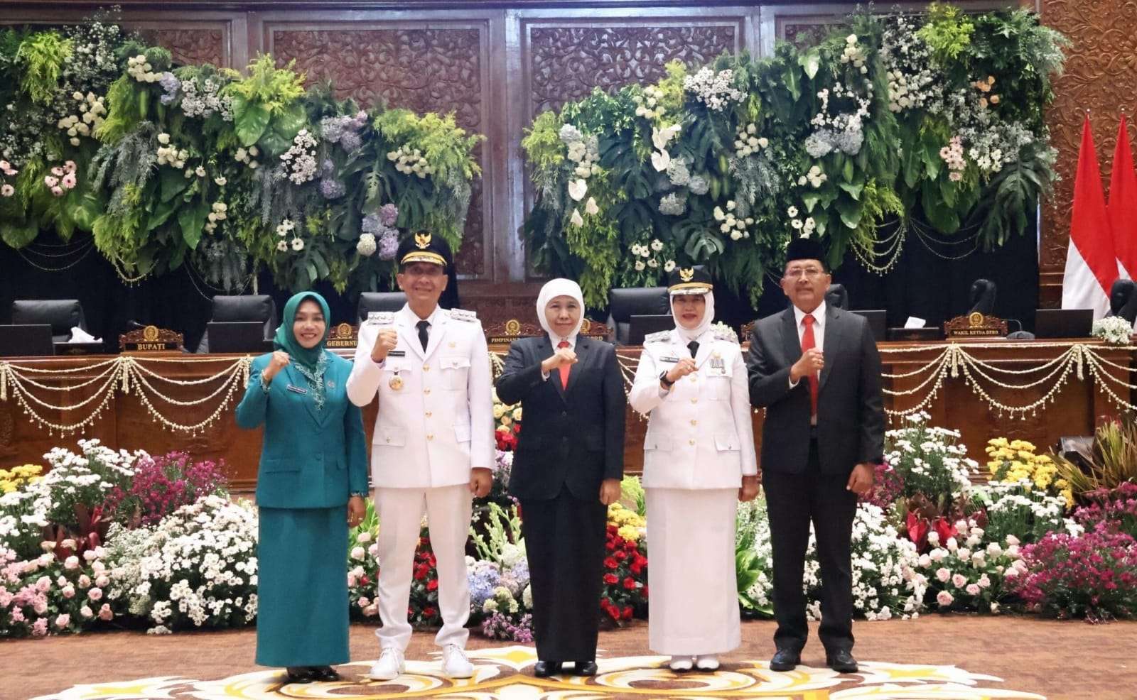 Acara sertijab ditandai dengan penandatanganan serah terima jabatan dan dilanjutkan Rapat Paripurna Istimewa penyampaian sambutan Bupati Bojonegoro periode 2025-2030.
