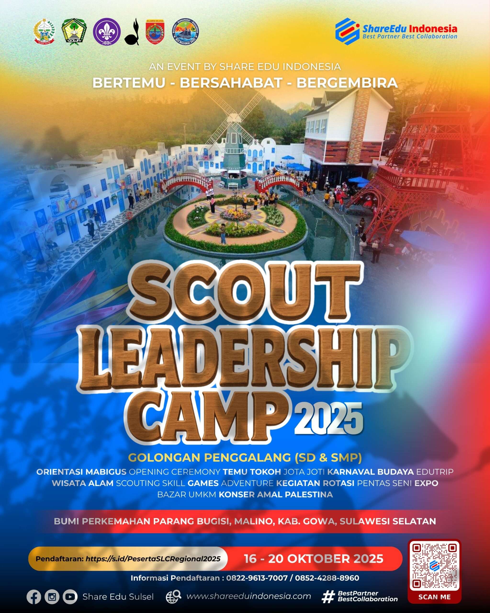 Kegiatan ini diselenggarakan oleh ShareEdul Indonesia Wilayah Sulawesi Selatan dan insyaAllah akan dilaksanakan pada 16–20 Oktober 2025 bertempat di Lapangan Parangbugis, Malino, Kabupaten Gowa.