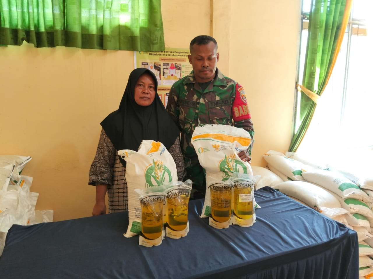 Bantuan pangan tersebut berasal dari Badan Pangan Nasional dan disalurkan untuk periode Oktober – November 2025. Setiap kepala keluarga (KK) menerima 20 kg beras dan 4 liter minyak goreng, yang merupakan akumulasi dari bantuan bulanan berupa 10 kg beras dan 1 liter minyak goreng per bulan.