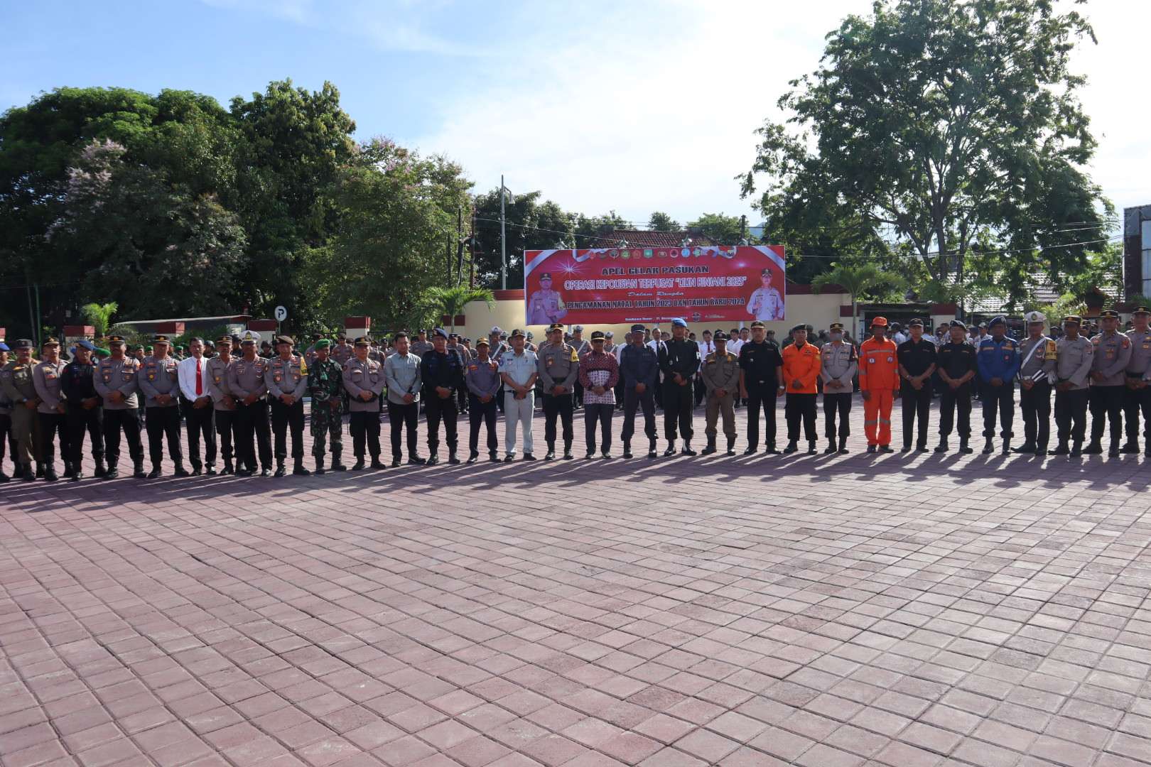 “Kegiatan Apel Gelar Pasukan Operasi Kepolisian Terpusat lilin Rinjani 2023 dalam rangka PAM Natal dan Tahun baru 2024 untuk menjaga Kamtibmas serta mengantisipasi adanya ancaman lain”. Terang Pasi Ops