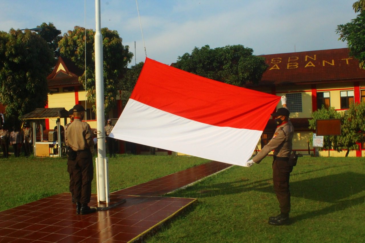 Siswa Diktuk Bintara Polri tahun 2022 SPN Polda Banten melaksanakan upacara pengibaran Bendera Merah Putih.