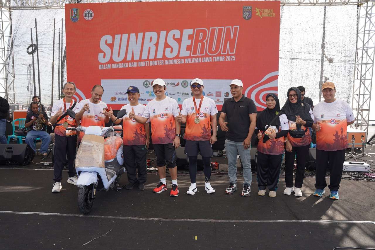 Tuban, XposeTv.live – Ikatan Dokter Indonesia (IDI) Wilayah Jawa Timur sukses menggelar acara SunriseRun dalam rangka memperingati Hari Bakti Dokter Indonesia Wilayah Jawa Timur 2025, Minggu (01/06). Acara yang digelar saat fajar menyingsing ini diikuti oleh sekitar 1.200 pelari yang mengambil titik start dan finish di Abirama, Kabupaten Tuban. Para peserta menempuh rute sepanjang 5 kilometer dengan semangat kebersamaan dan olahraga.