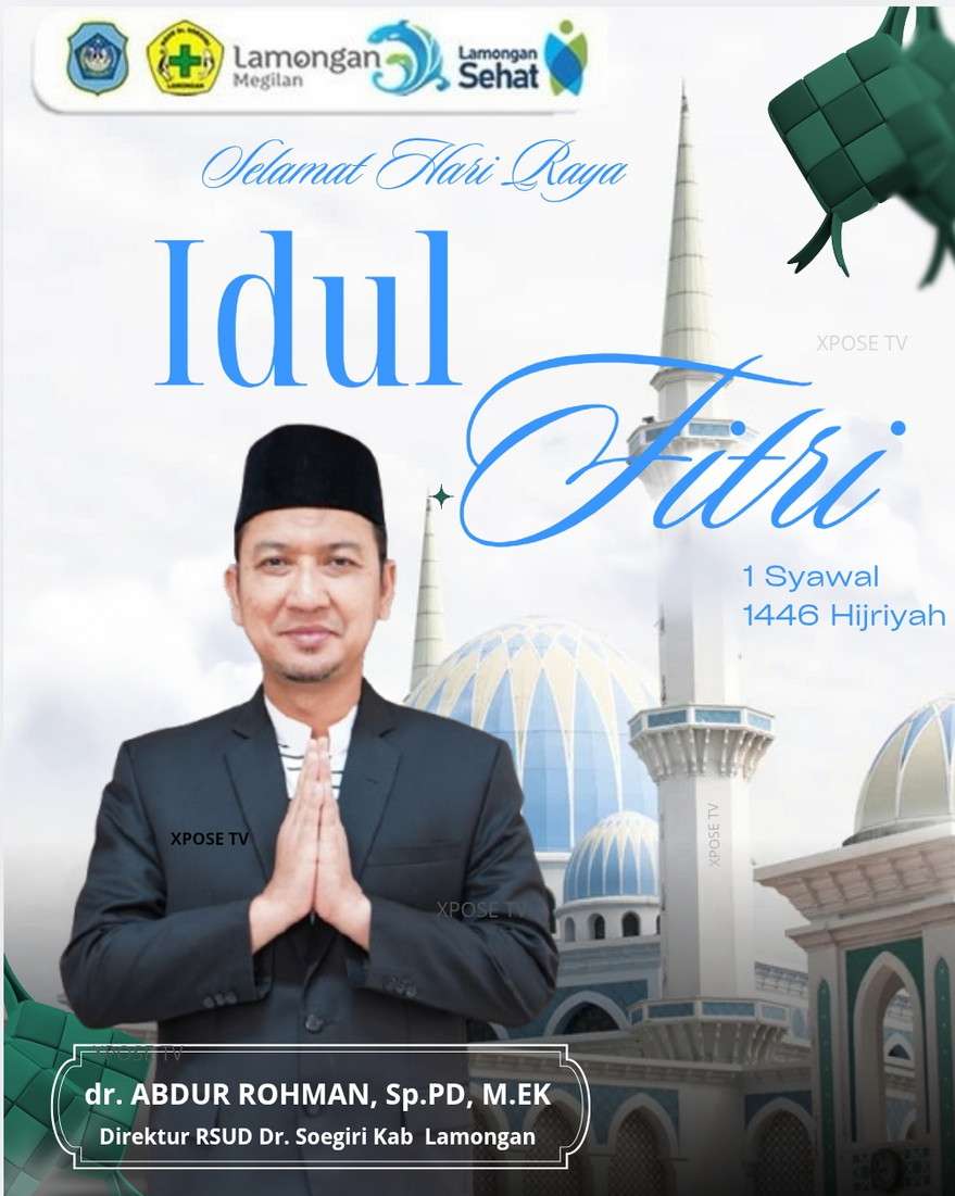dr. ABDUR ROHMAN, Sp.PD, M.EK Direktur RSUD Dr. Soegiri Kabupaten Lamongan Mengucapkan Selamat Merayakan Hari Raya Idhul Fitri 2026