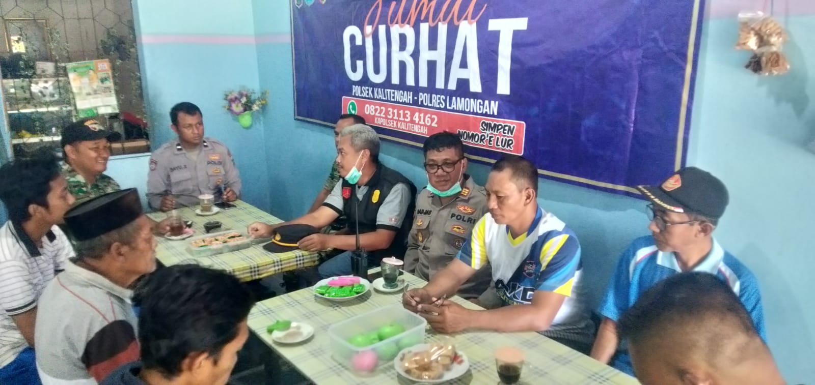 XPOSE TV LAMONGAN – Tampung Aspirasi Dan Keluhan, Polsek Kalitengah Gelar Jumat Curhat kegiatan tersebut dilaksanakan di Desa Dibee, Kecamatan Kalitengah, Kabupaten Lamongan, Jawa Timur, Jumat (27/1/2022).